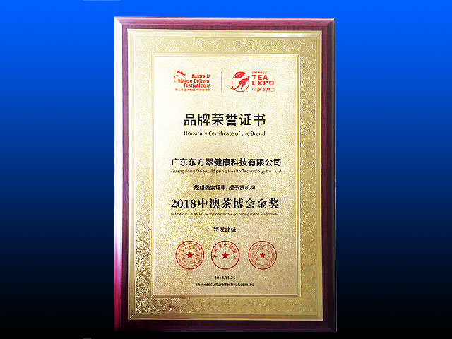 2018中澳茶博會(huì)金獎(jiǎng)
